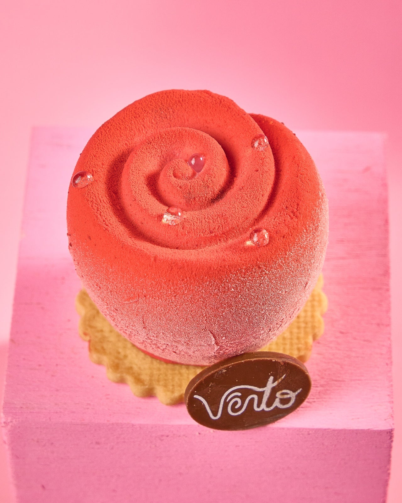 Nuestro postre más coqueto, en forma de rosa y con sabor a frambuesa.