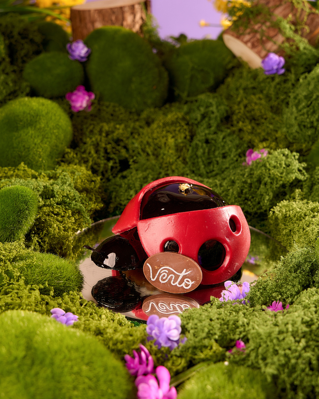 Mousse de cookies & cream y chocolate semiamargo con un centro cremoso de vainilla, acompañado de un crujiente de oreo, feuilletine y chocolate. Se complementa con un bizcocho de chocolate oscuro.